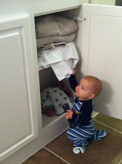 Max getting into stuff (but notice he hasn't let go of the TV remote in his hand)