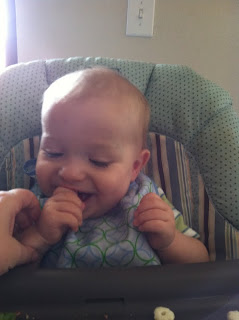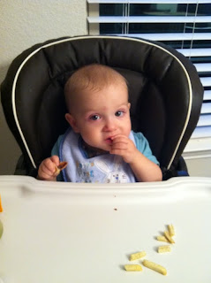 I was playing games with him and "trying" to stop him when he tried to eat his puffs.