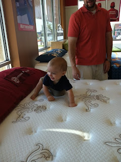 Along with bed shopping comes mattress shopping. This was more fun for Max until he fell off a bed in one of the stores (Peter caught him) and then started crying because it scared him. We got dirty looks from the other customers because they didn't see Peter catch him and thought we just let our kid fall off the bed. That was nice.