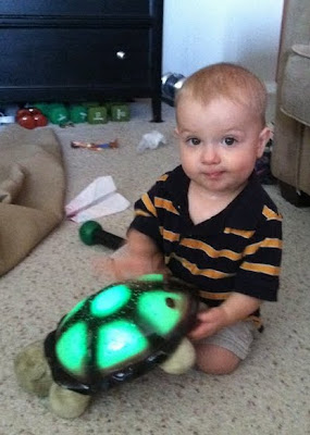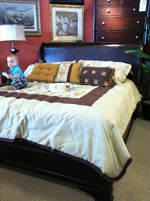 We went bed shopping for a new king size bed for the master bedroom so we could move our current queen size bed into the guest bedroom. A furniture store is NOT a great place to keep a 1 year old entertained.
