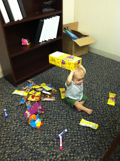 Brittany needed to take Landen for a doctor's appt so I offered to take Max back to the office with me after lunch for the hour or so while she had Landen's appt and then she could pick Max up at the office on her way back home. I figured it would be easier to only take one toddler to the doctor's versus 2 plus I would prefer to keep Max out of doctors offices (away from the sick kids that frequent them).