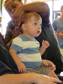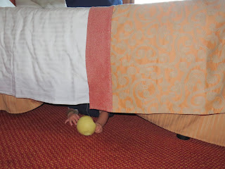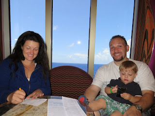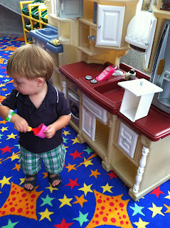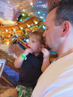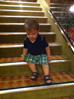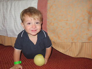The next day was at sea (I'm sure on this one). Max was too young to participate in any of the kids programs which was irritating. They have a rule that the kids have to be 2 years old. Because Max turned 1 on the day AFTER the cruise ended, they wouldn't let him participate. I had thought that, for sure, they would accept him since he was so close to 2 and so I didn't bring a bunch of toys with me. Bad move. They only had a couple of "open play" sessions throughout the cruise where the under 2 crowd could go play. This first day, he was the only one there.