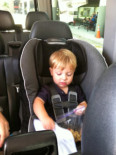 We upgraded to first class on the way to Ft. Lauderdale. Having all that extra room made having Max on our lap no big deal. It was a great way to start out the vacation!!!