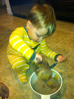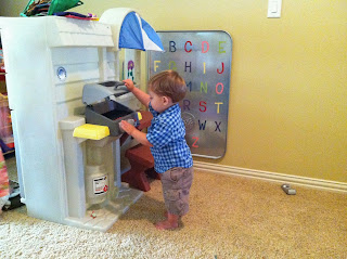 He loved playing with the kitchen
