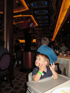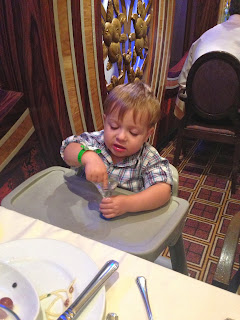 We sat in a different server's area this night and the service was awful. He didn't give Max any attention (or preference. Seriously...don't make the 2 year old wait for everyone else's entrees). We decided we'd go back to our first night server every night even if it meant waiting a little longer to eat. It made the experience so much better to have a wait staff that engaged with Max.