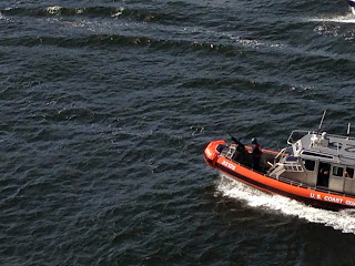 Our armed escort out of the port. I always find the fact that we are escorted by a big, scary looking gun a little unnerving. This coast guard crew was pretty fun though and they were doing tricks and entertaining the crowd.