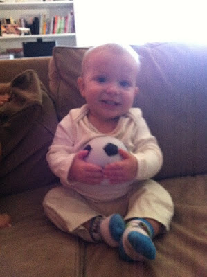 Max is putting the ball on his head and letting it roll off. He thought he was pretty funny.