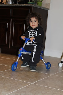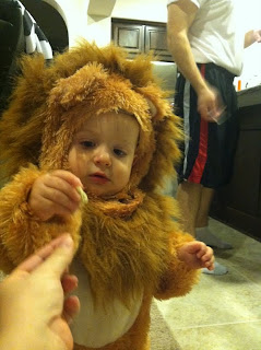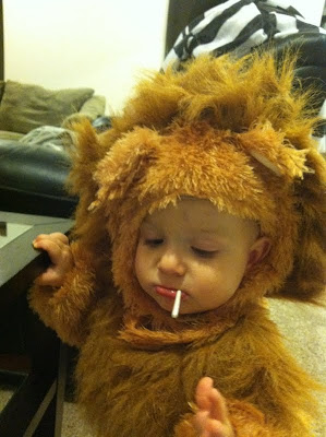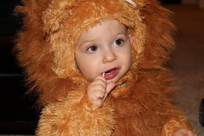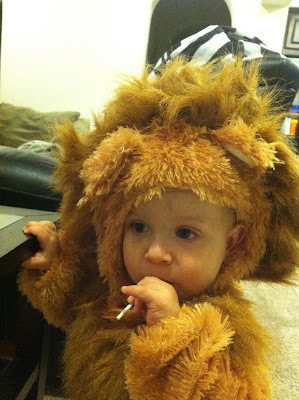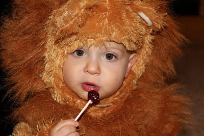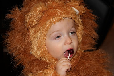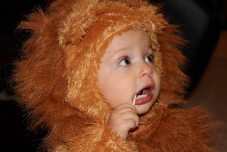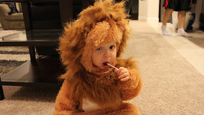 It was Halloween - of course he should get some candy! At least, that's what I thought...Peter's position was that we shouldn't give him candy. This was a switch because usually it's Peter who caves and gives Max more snacks while I push for Max to get some fruit or something with substance. I talked Peter over to the dark side and Max got to have his first sucker ever!