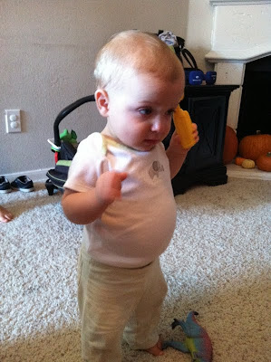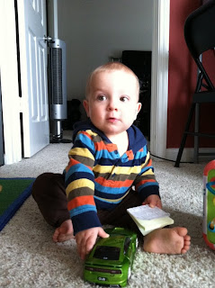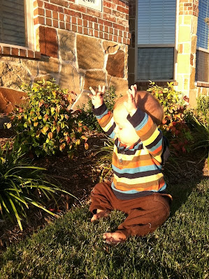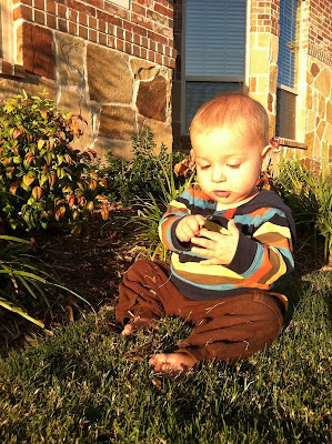 It was a beautiful day so we came home and enjoyed the sunny day. Long sleeves, pants, and barefoot. It was warmer than I expected when I dressed him so it was okay for him to be outside without socks on. That's what happens when Maxwell doesn't let socks stay on his feet.
