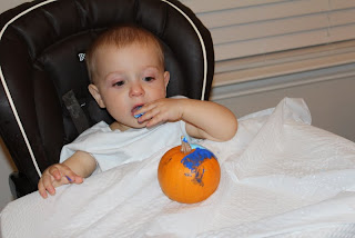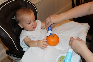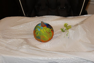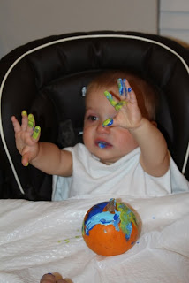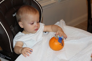 Max got to finger paint on his pumpkin.
