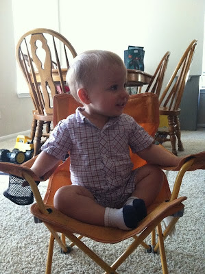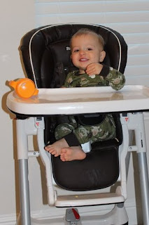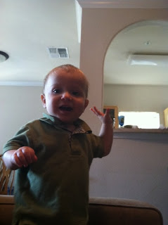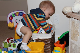I am sure you may look at this picture and all you will see is the outlet that hasn't been childproofed right behind Max. Don't judge. Max has little interest in outlets. Every once in awhile he'll pay attention to one that has something plugged into it (usually it's when something NEW is plugged in that isn't usually plugged in there). But as far as empty plugs? Not interesting for him. I'm glad because there are 60 outlets in our house that would require plugs. We counted before we moved in. I decided that if they were something that he was drawn to, I'd make the investment in all those covers. However, if he didn't care about them (which he doesn't) then I wasn't going to spend the money. Maybe someday I'll buy them but for now, they'll remain unchildproofed.