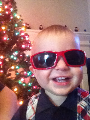Wearing Hayden's shades - hopefully he'll wear his sunglasses at the beach!