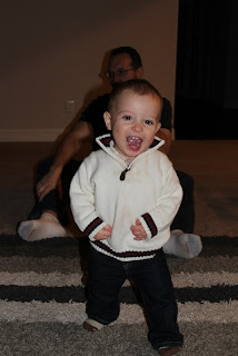 December 22nd was a rough parenting day. Max has started throwing tantrums. When he throws his tantrum he collapses to the ground and throws his head against the ground. So I have to try and slow his momentum in order to protect his head. So not only were there tantrums but he wouldn't take a nap. He clearly didn't feel good and wouldn't eat either. (Of course we tried to make him eat and take a nap which meant there was a struggle on both.) He was whiny and fussy and NOT HAPPY. Bad days for Max = bad days for parents. It's HARD when you don't have a happy kid smiling at you to melt your heart when you are ready to pull your hair out. It's a good thing we don't have many days like today. No fun.