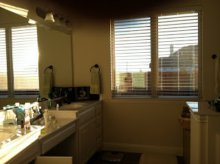 I LOVE my bathroom in the morning. It's full of sunlight. When the house next to us gets built, we won't get to enjoy as much sun as we do now. In fact, there's already less sun shining in our window with just a few of the houses that have been built on our street.