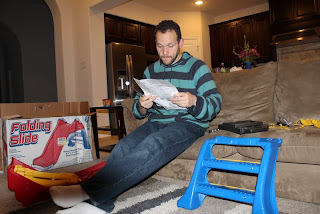 Peter doing his "Dad" duty and pulling the late night shift for putting a toy together.