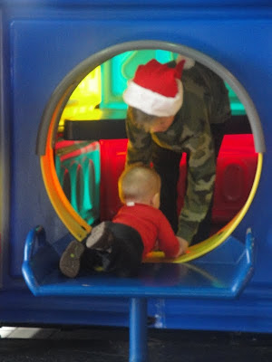 We had the playground to ourselves nearly the whole time. (McDonalds apparently is NOT the place to be on Christmas Eve.)