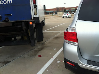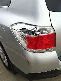 As you can see, it was not as catastrophic as I was imagining. So this guy had a big old u-haul and wanted to park it. I don't know if you can tell or not, but the parking lot was really empty. So why he had to park so freaking close to other cars versus parking further out stumps me. But anyway, he pulls this big truck in and a part of the truck swipes the side of my car, breaking my tail light and scratching my bumper.