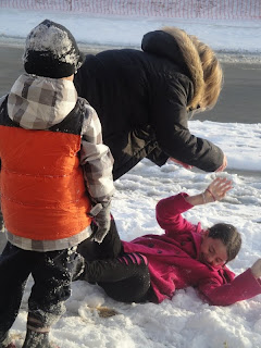 Kaitlyn, Tyler, and I tried to make a snowman. It was NOT good snowman snow. Here's our sad snowman.