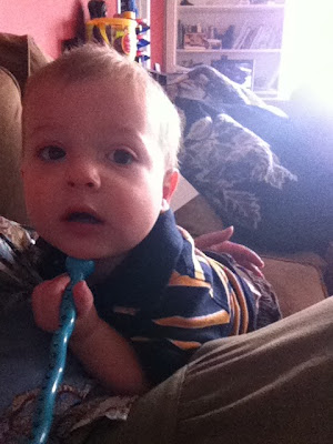 - His first incisor tooth has popped through on his top left side. Thank Goodness because it's been drool city around here!