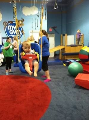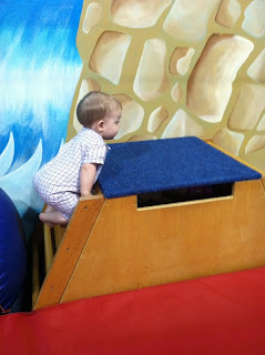 I enrolled Max in a class at the kids gym for toddlers. He was one of the youngest there and was extremely timid the first time. He warmed up the more times he went but he still wasn't as adventurous as the other kids. He's just very cautious and doesn't want to explore much, especially without mommy. I feel like he's really strong in his language skills but his physical abilities are behind others his age. Apparently that's normal for a child to be strong in one area but weaker in the other. Eventually they catch up on the weaker one. My hope was that by going to this gym class once a week it would help him progress physically.
