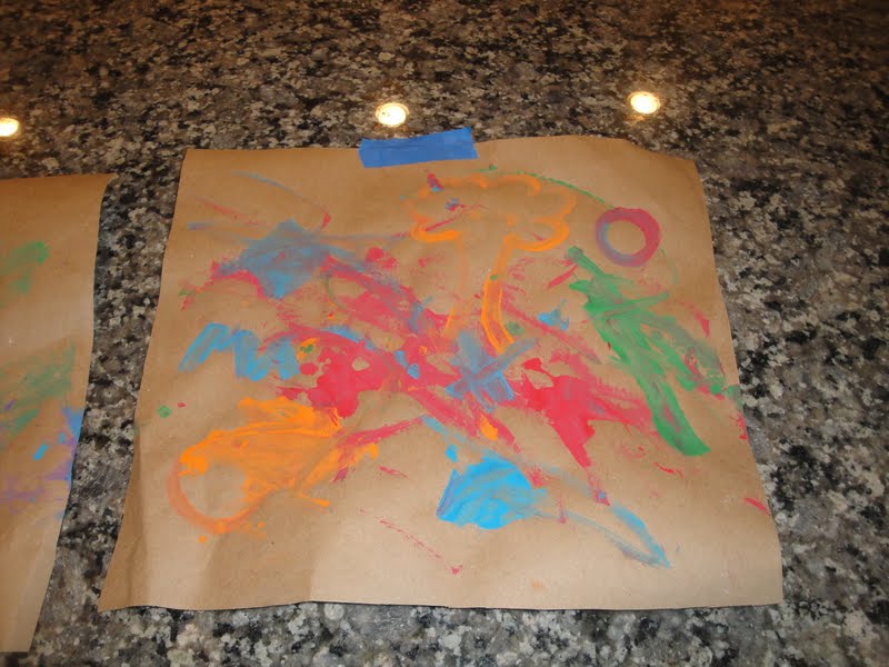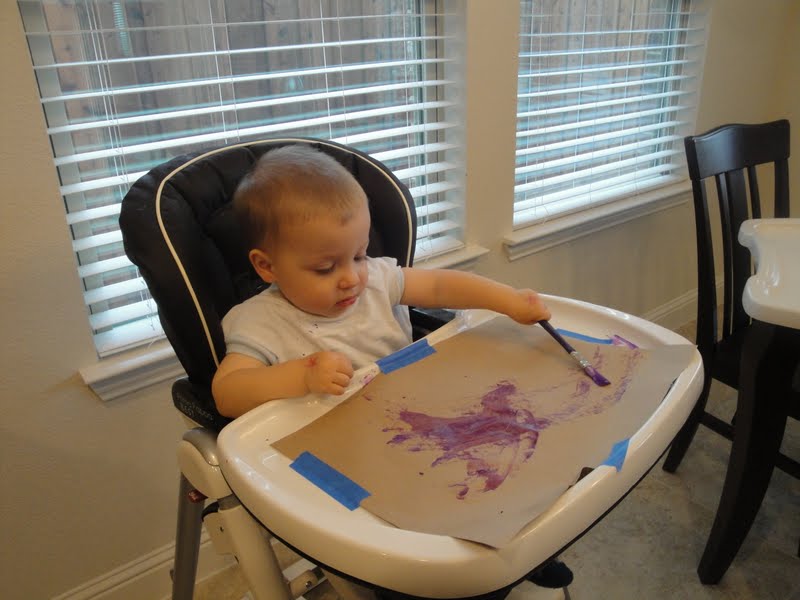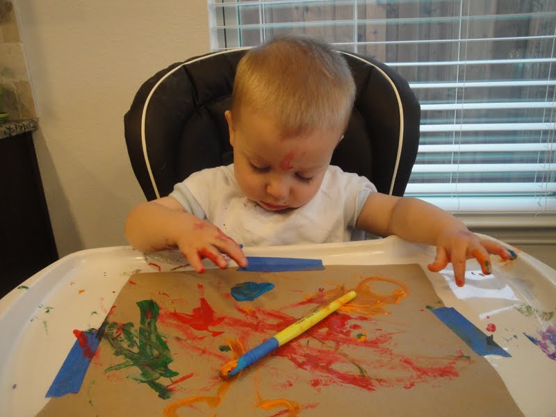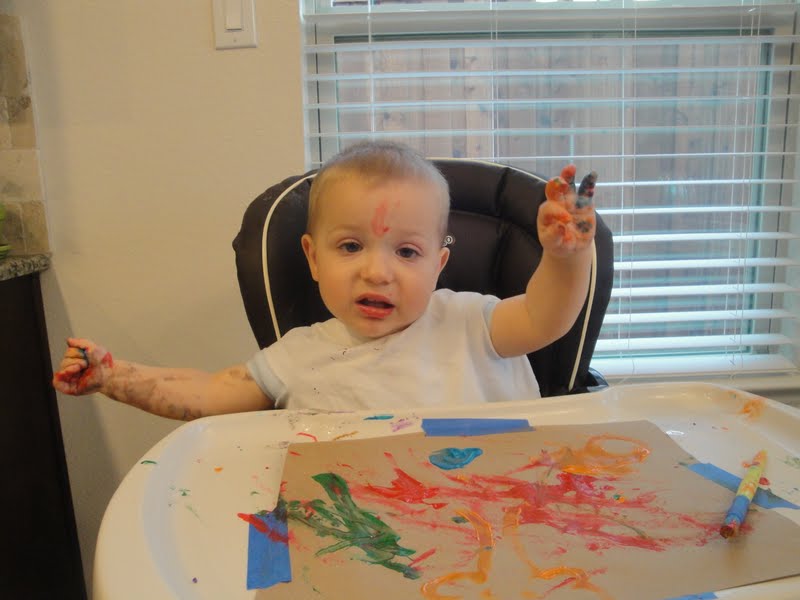 The gate project for work inspired me to have Max do more painting. We had bought paints for a project during Christmas to keep all the kids busy but we hadn't used them yet. So I got them out on and let him paint for the first time. He had fun!