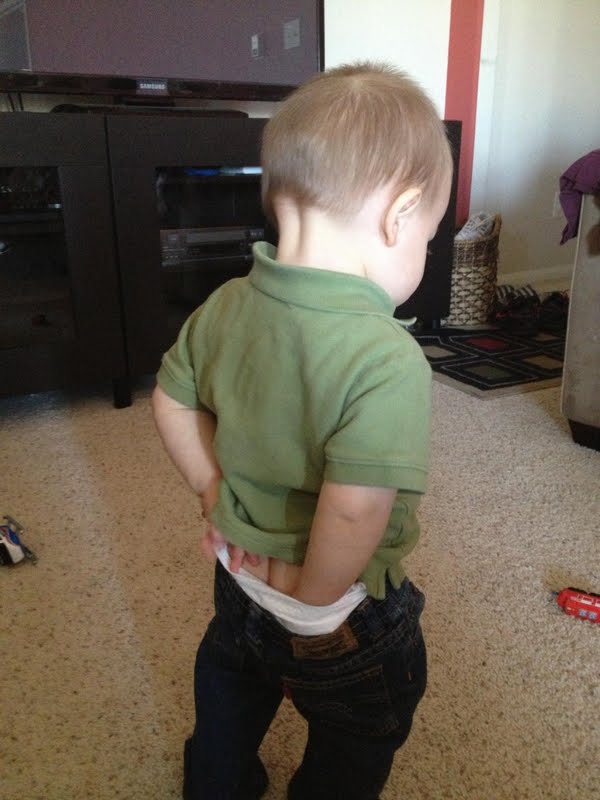He's been reaching in his pants lately. I'm not sure why, I think he's scratching. I have made more efforts to keep a onesie on him to keep him reaching in there after he'd done his business...