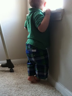 I thought it was so sweet how he was standing with his feet crossed, looking out the window.