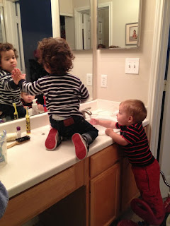 Brittany told me a sweet story about the boys this week. So, Landen was laying on the floor and says "Max, I love you" and so then, Max went and grabbed Landen's blanket and put it over Landen. It's tender to see them love each other.