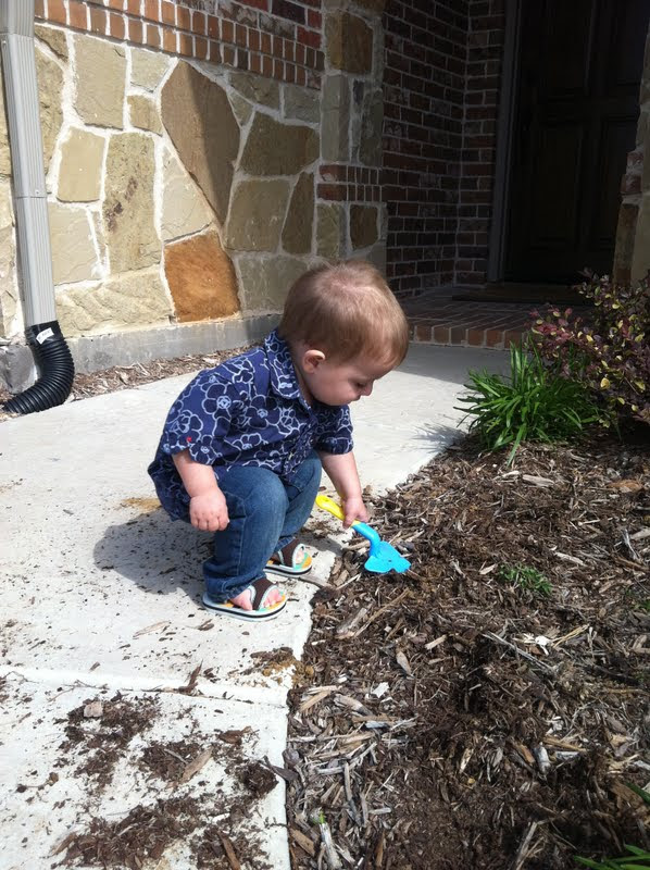 Max had his shovel and was helping me. He didn't like it when it his hands got dirty. I like including him on any type of chore/activity I can. I just need to be better about remembering to include him even if it's just when I'm making scrambled eggs and he can help stir the eggs in the bowl.