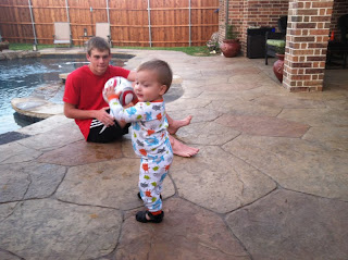 We love our neighbors - Chris and Mary Anne and their family. Max really loves their son Jared. He tends to be less shy with Jared than anyone else. It's funny because sometimes they will both just stand there and look at each other. I don't think Jared always knows what to think of Max. :) This night they threw the soccer ball back and forth to each other.