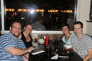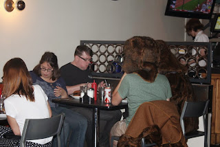 So we are sitting there, having a great dinner, and all of a sudden we notice there are some bears at another table. Seriously, there were people, eating dinner, in bear costumes. It was really funny. I tried getting a good picture with Richard in it but it just wasn't working.