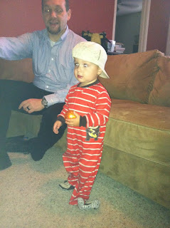 Notice his pajama pants that are dragging on the floor? Yup. That's how short he is. These are size 18 to 24 month.