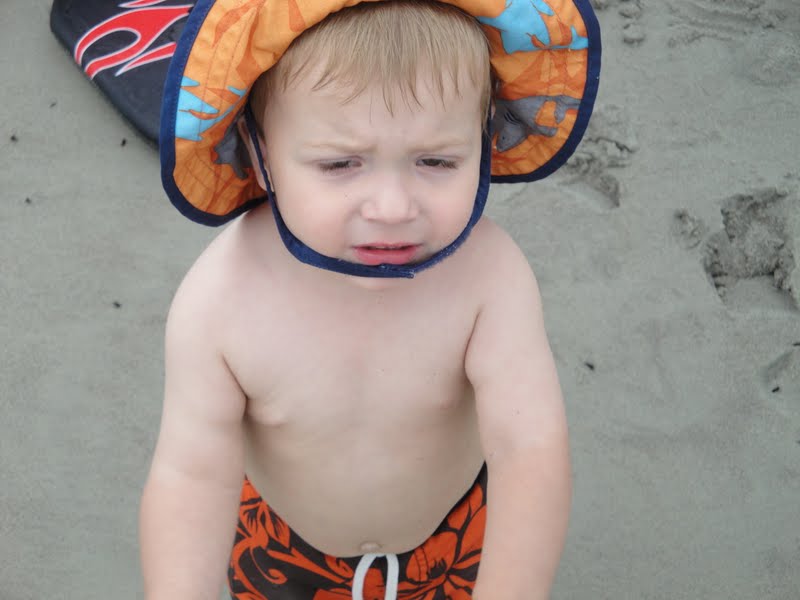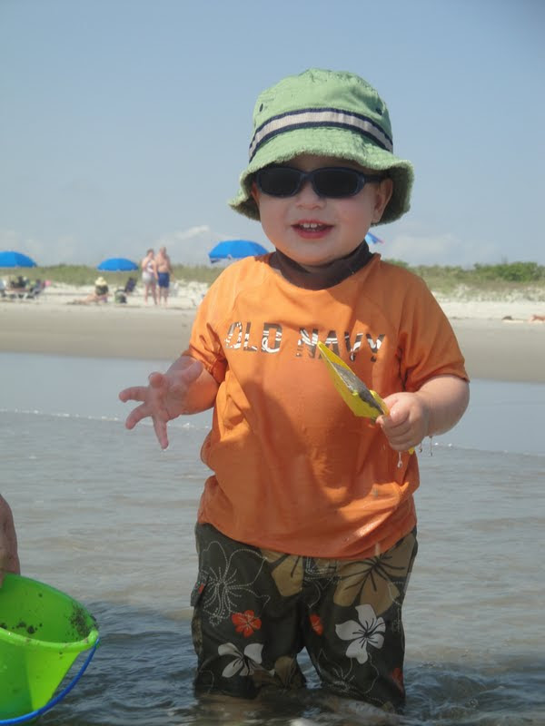Max all covered up, sunscreened, and ready to hit the beach!
