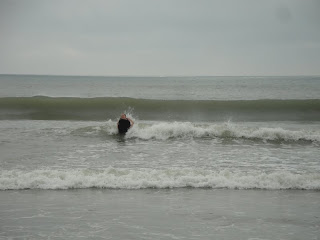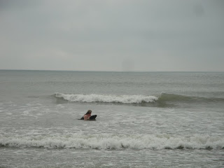 We bought a (if I use the wrong term - sorry...totally not an expert) boogie board for body surfing at the surf shop yesterday. We both gave it a try but never really were successfully.