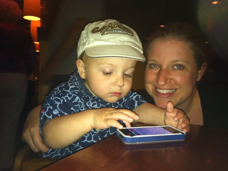 Again, we entertained with the iPhone. Keep in mind this isn't our first chain of defense. First we colored, then we played with cars, but eventually he's not interested in any of that. So, out comes the iPhone. We certainly love the awesome servers that will bring out Max's food first because usually he's so done by the time our food comes that the meal isn't very enjoyable.