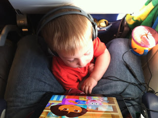 No middle seats were open on the way back, the flight attendants weren't nice, and Max was wiggly. He said he'd never do it again. Sorry, Peter - thanks for doing it though!!!