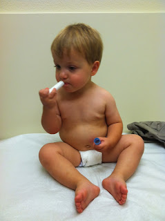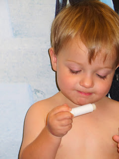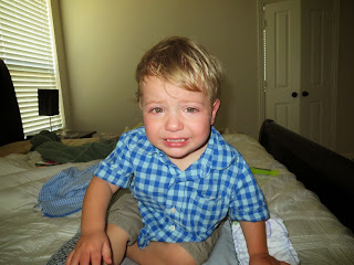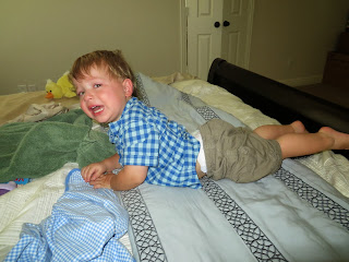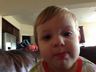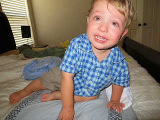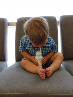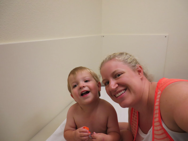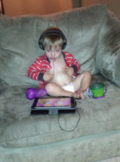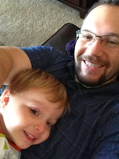 This was sick Max one morning I was gone. He was watching the iPad while his dad worked out. He was so unhappy, he was playing with his nipples to self soothe. We have noticed that Max has a fascination with skin bumps. Peter has a little pink bump on his arm (I'm not sure what it really is, it's not a mole) that Max calls a "bubble". He likes to rub it when we are cuddling as a family at night. He has tried to find a "bubble" on my arm but the closest I've got is a mole. I think that fascination is also why he likes to play with his nipples. We've noticed that when he gets tired or unhappy he will self soothe as well.