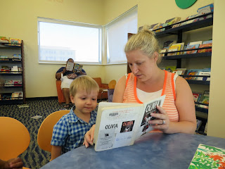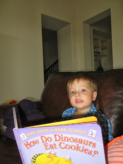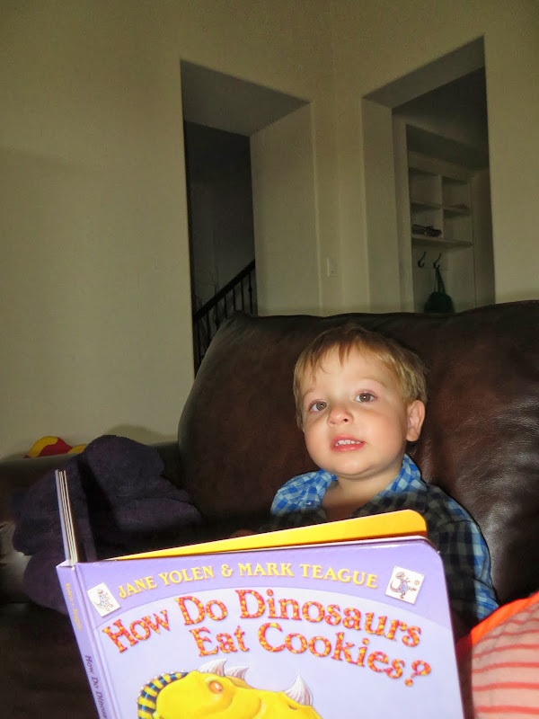 - He is enjoying reading the library books we got