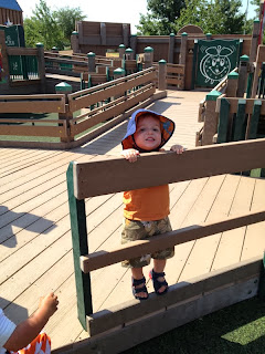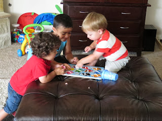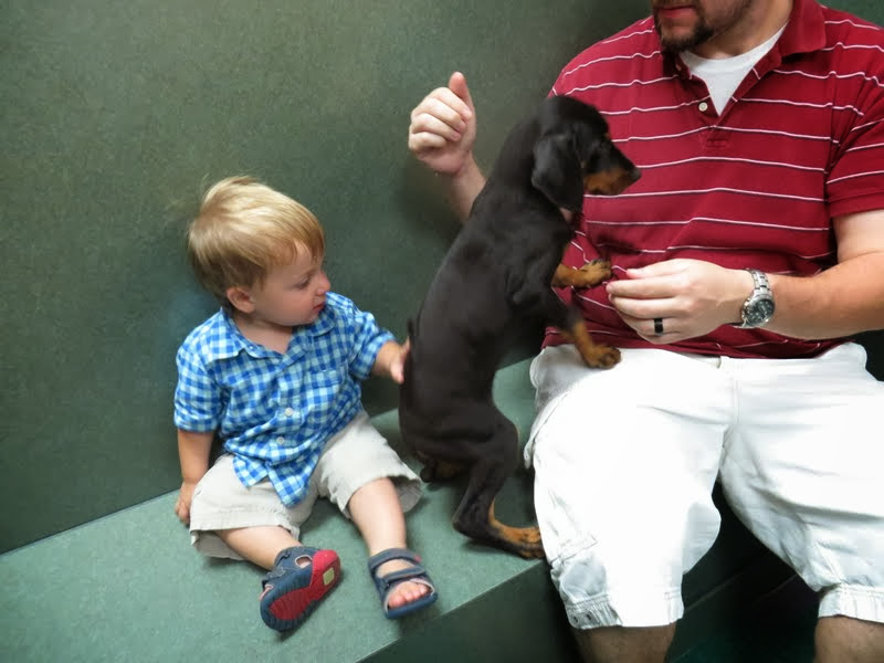 ...and when that didn't work, Max decided to get away himself. It was pretty funny because the puppy followed him and he kept trying to get away. He also kept saying "all done". He just wasn't a fan of playing with the puppies.