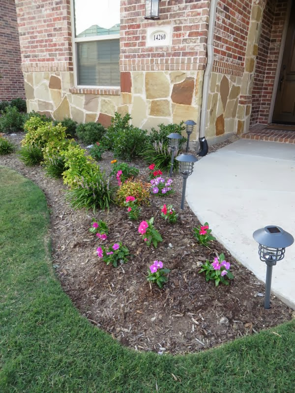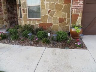 I did a little more gardening in the front yard. I added a bunch of flowers and then I finally planted the pots on either side of the garage.