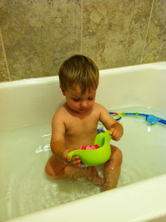 - We have taken the first baby step towards potty training - he is aware when he pees in the shower. That's a good awareness, right?