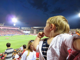 He was nervous at first at the soccer game, especially since they did some fireworks at the opening right after the national anthem. But, he calmed down and ended up clapping and having fun.