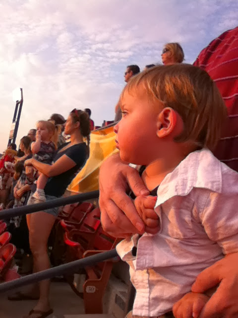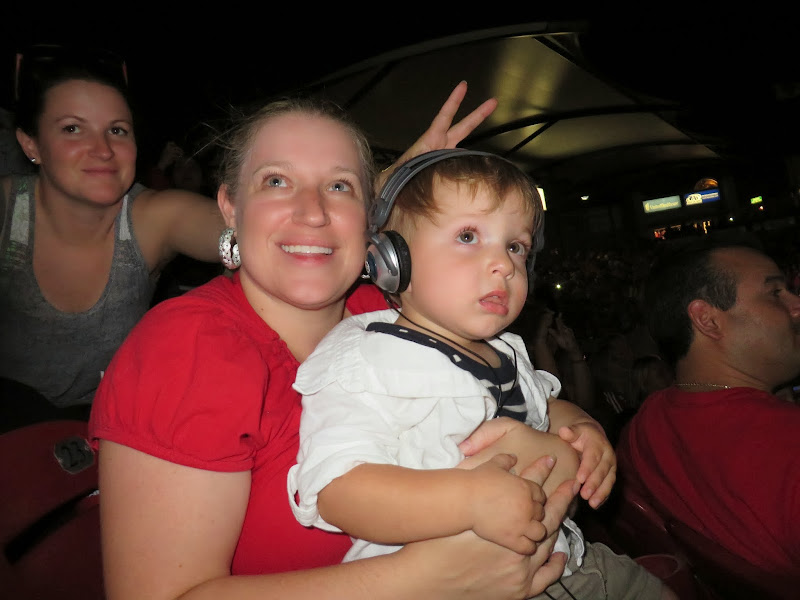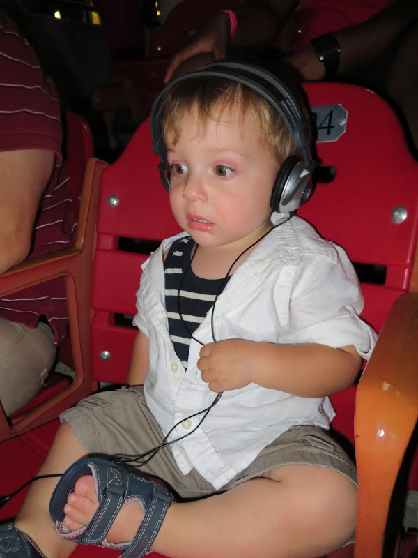 We brought Max's headphones since we figured he'd freak out at the fireworks. So when it came time for the fireworks we plugged the headphones into Peter's phone so he could listen to music instead of all the booms. He started out on his own seat...
