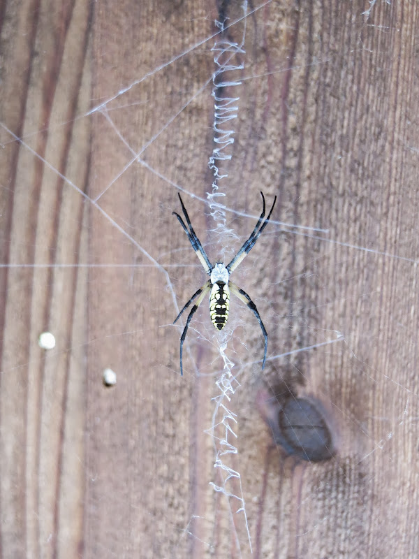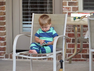This creepy spider was in our backyard. His web was pretty cool. Apparently he's a "good" spider (is there such a thing?). Hayden liked to look at him. This is one of the many reasons, I have pay for pest control. While this is cool, I don't like it in my backyard. I hope Max isn't really into bugs and creepy, crawly things!