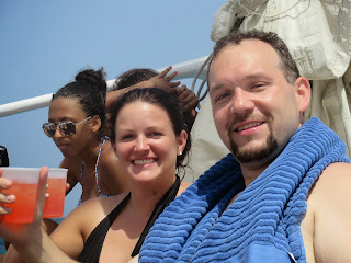 Peter, Max, and our new Canadian friend Juan. After the party boat, everyone was having a good time (as evidenced by Kimberly harassing me and continually sticking her finger in my ear... so annoying!).