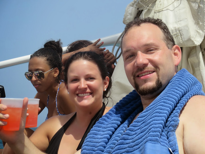 We started out on a huge catamaran that took us to a snorkel spot. This was the best catamaran trip we've been on. Great boat, great staff, great sandwiches and drinks, great fun!