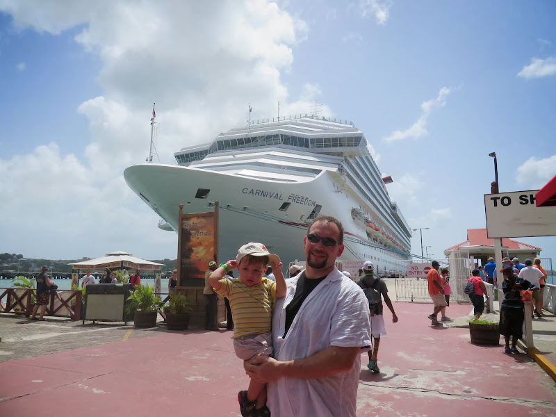 Headed back to the boat (the Carnival Freedom) with Max's cool new hat. It was a Parana Joe hat that was super cute. I was sad because somewhere during the course of the rest of the trip, we lost it. :(