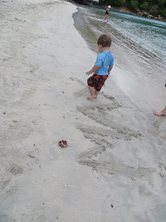 It got a little cloudy but it was still a fantastic beach with amazing sand and perfect temperature water. Max had fun playing in the ocean. We were throwing him back in the forth in the water and he was counting in Spanish going "Uno, Does, Tres!" It was super cute.
