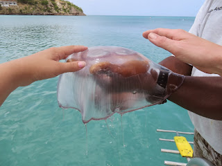 The staff grabbed it and showed us - it was really beautiful. They let Kimberly and I touch it. (We washed our hands really well after - apparently it's the tentacles that will sting you, not the main part.)