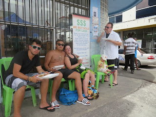 The locals pulled some chairs out for us to sit on so we sat right there on the sidewalk and enjoyed our food.